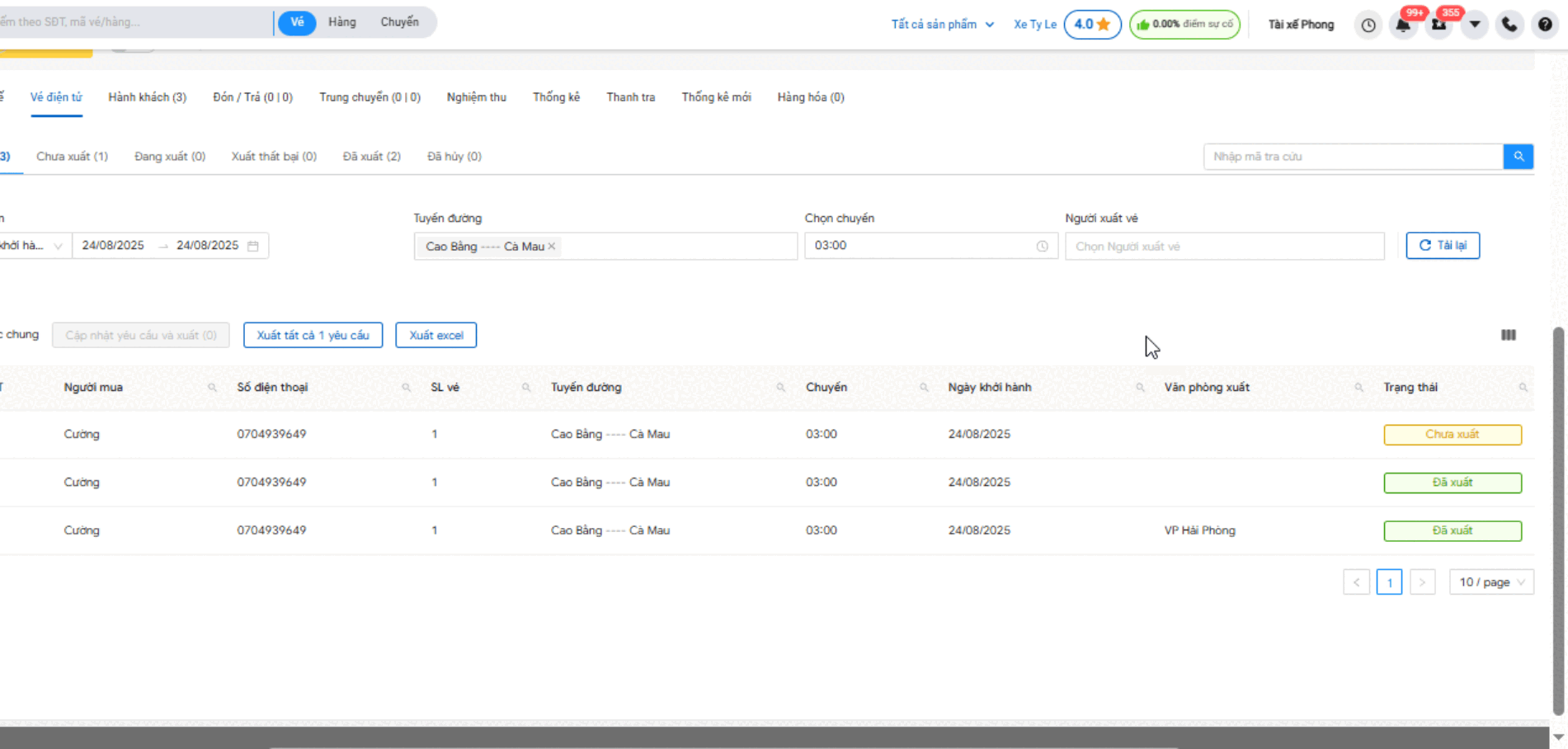 3.4 Chưa gán mẫu vé/hóa đơn điện tử theo đúng tuyến đường → không tìm thấy mẫu vé điện tử