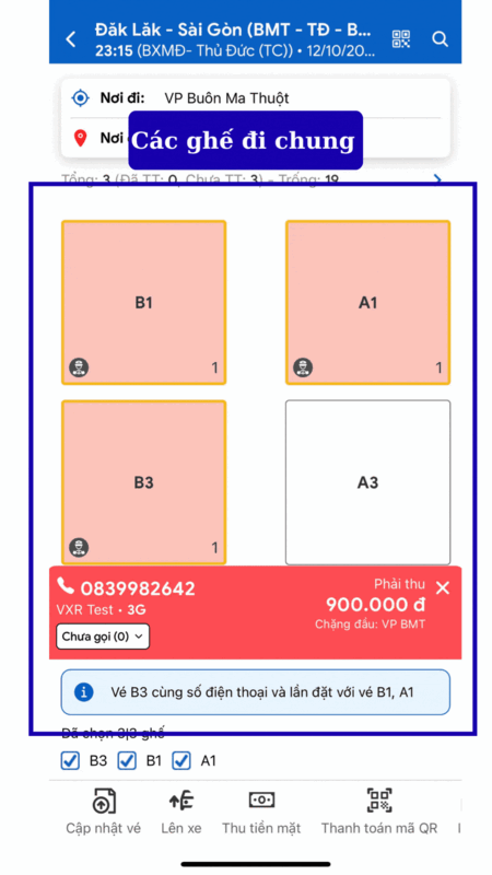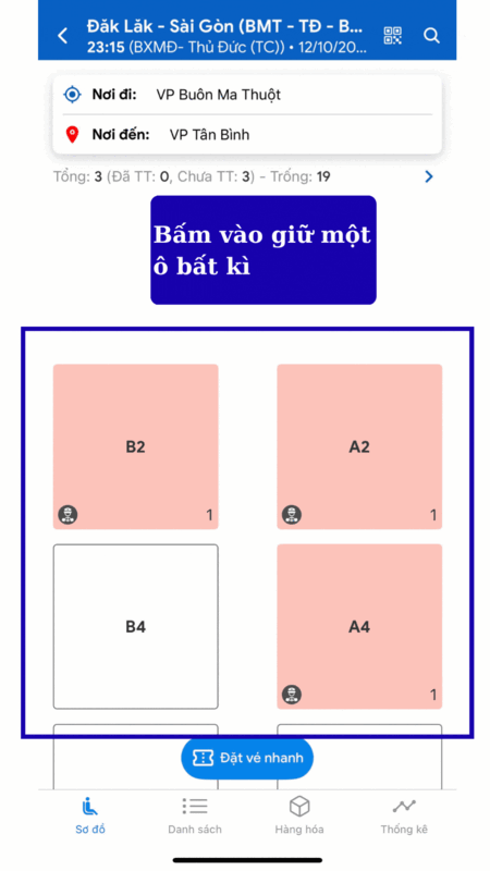 Bước 1: Nhấn giữa vào một ô vé bất kì, những vé đi chung sẽ hiện viền màu cam