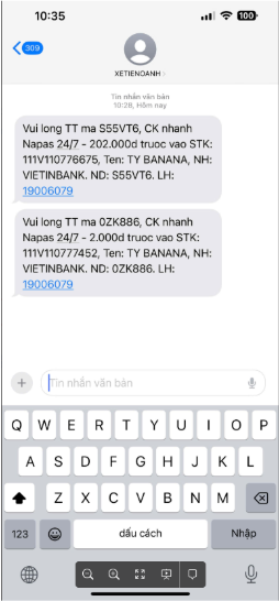 Sau khi đã thực hiện các bước như trên, Thông tin chuyển khoản sẽ được nhắn về SMS/Zalo của khách (nếu khách không sử dụng zalo, không tìm thấy thì hệ thống tự sẽ gửi về tin nhắn SMS)