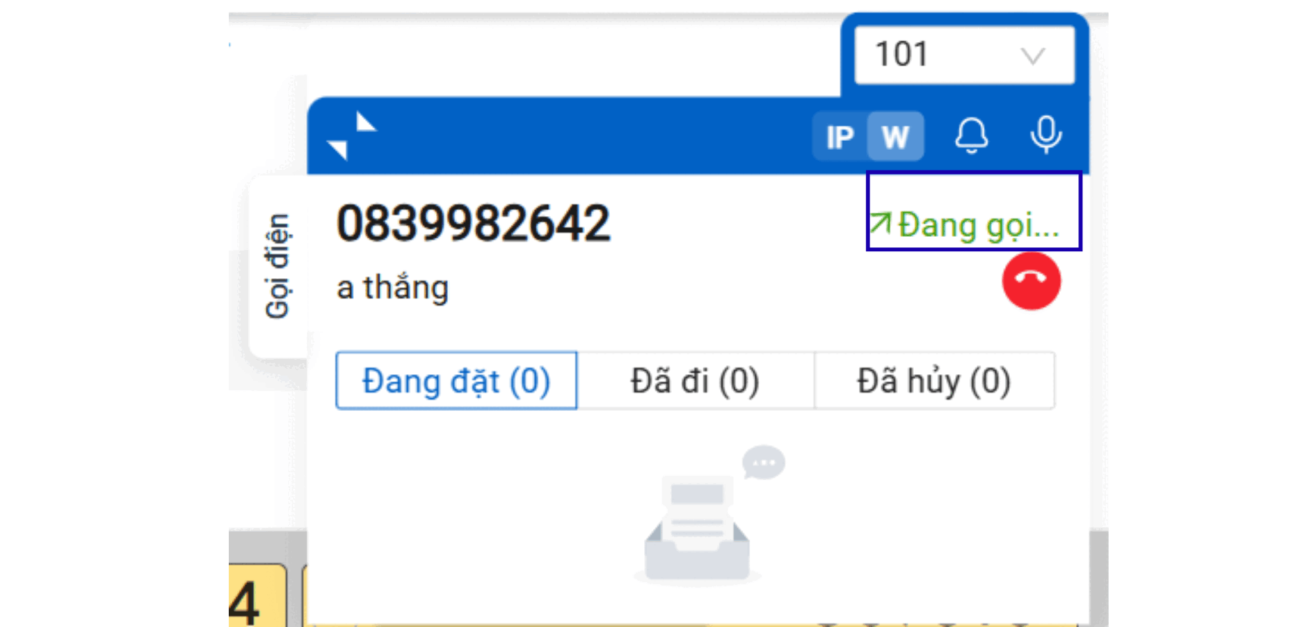 • Popup cuộc gọi: Cửa sổ nhỏ hiện lên trên màn hình khi có cuộc gọi đến hoặc khi thực hiện cuộc gọi ra. Popup này hiển thị thông tin số điện thoại, tên khách (nếu có) và đơn hàng liên quan.