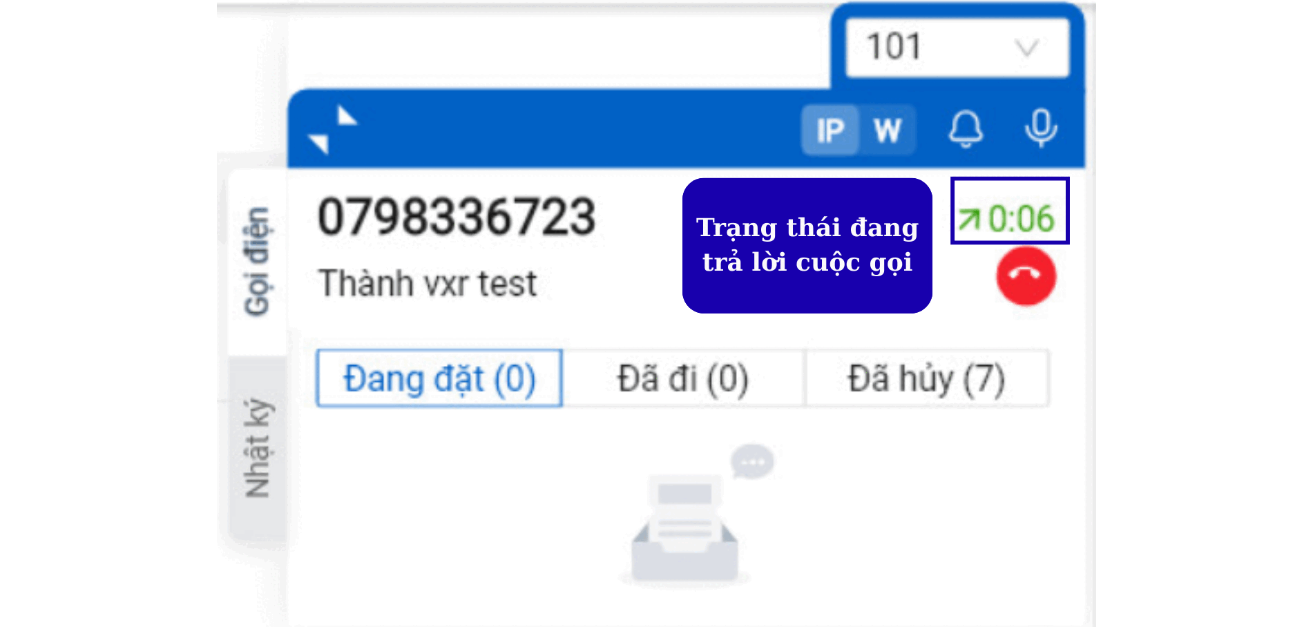 Bước 3: Chuông điện thoại bàn sẽ reo => Anh/chị nhấc điện thoại bàn để thực hiện cuộc gọi ra với khách hàng => Màn hình khi đã kết nối được với khách hàng:
