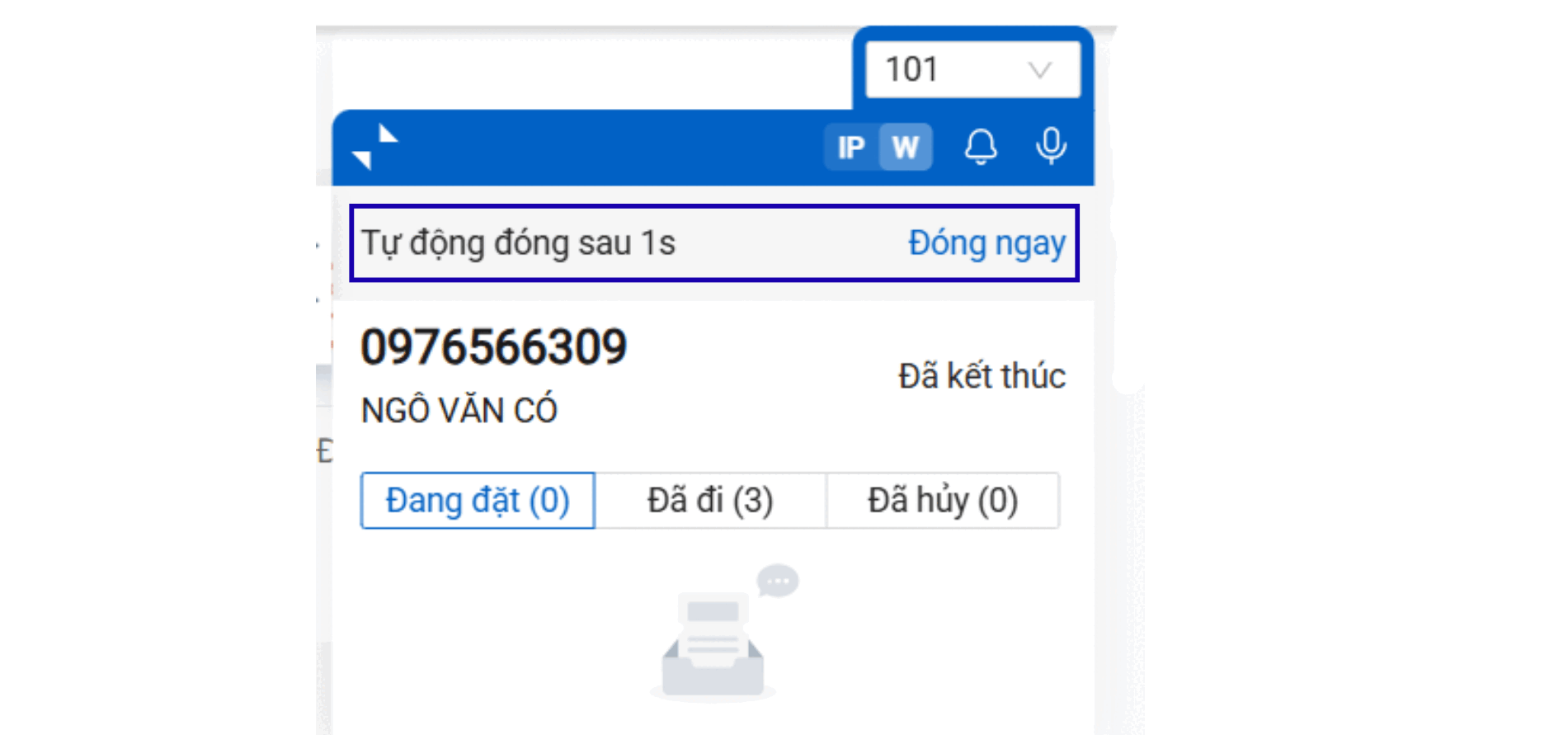 Giao diện sau khi anh/chị kết thúc cuộc gọi sẽ tự động đóng sau 3s (giây). Hiển thị của Web mode và IP Phone mode tương tự nhau.