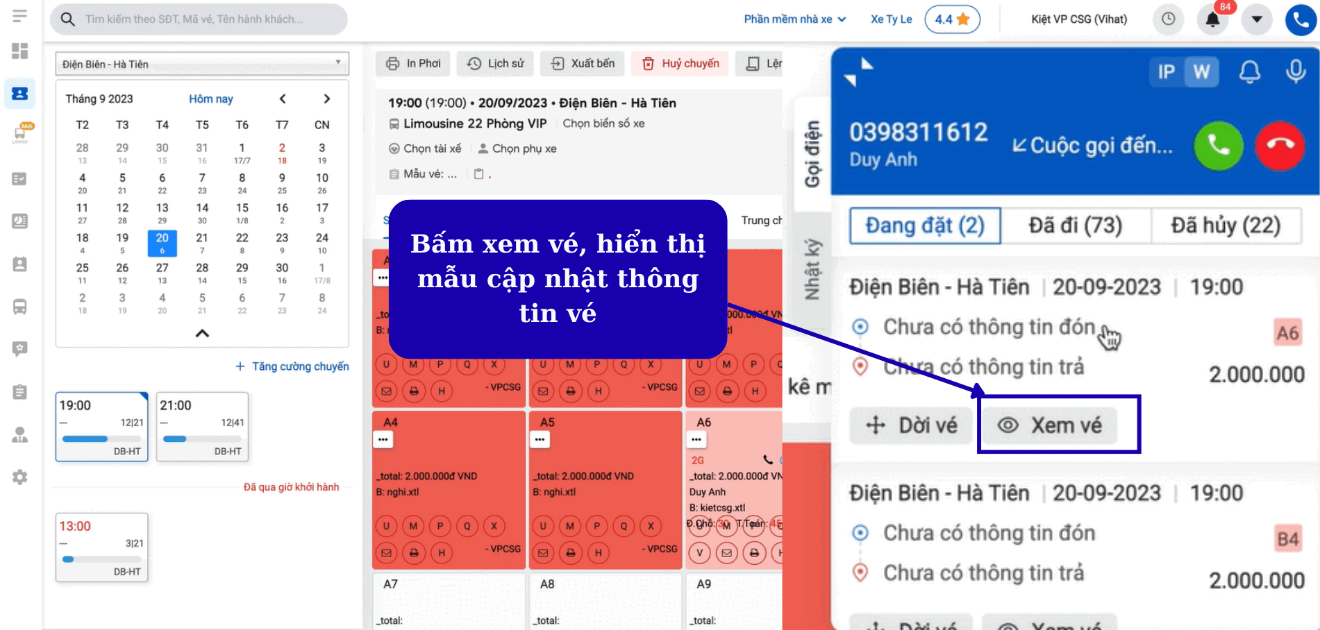 Cách thực hiện cuộc gọi trên Phần mềm Quản lý bán vé