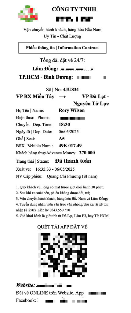 | 🎯 Tính chính xác | Dễ sai sót thông tin, nhầm lẫn số ghế | Thông tin chuẩn xác, đồng bộ với hệ thống |