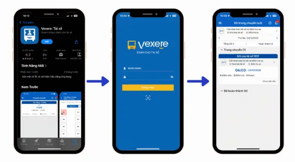 Bước 1: Tài xế tải ứng dụng và đăng nhập vào ứng dụng quản lý tài xế của Vexere theo thông tin đã được cung cấp