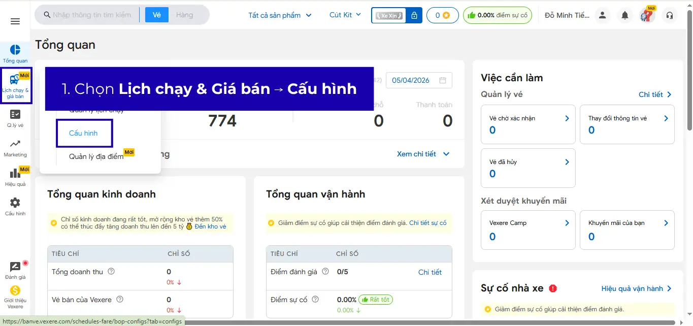 Bước 1: Truy cập vào mục “Lịch chạy và giá bán” ➜ Chọn “Quản lý lịch chạy”