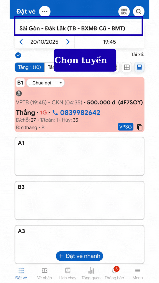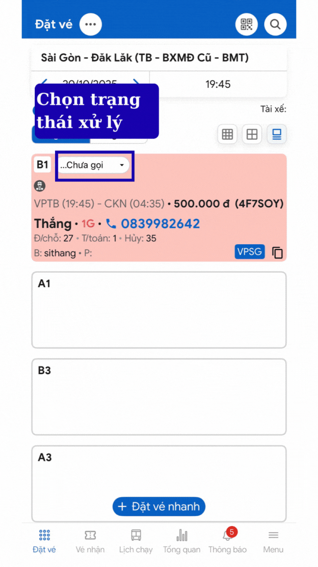 ⇒ Vì thao tác xác nhận vé trên hệ thống giúp đồng bộ trạng thái cho toàn bộ nhân viên. Người ở ca sau có thể nhìn thấy ngay vé nào đã xác nhận, tránh gọi trùng hoặc sai khách, đồng thời giúp điều phối nắm chắc thông tin đón trả.