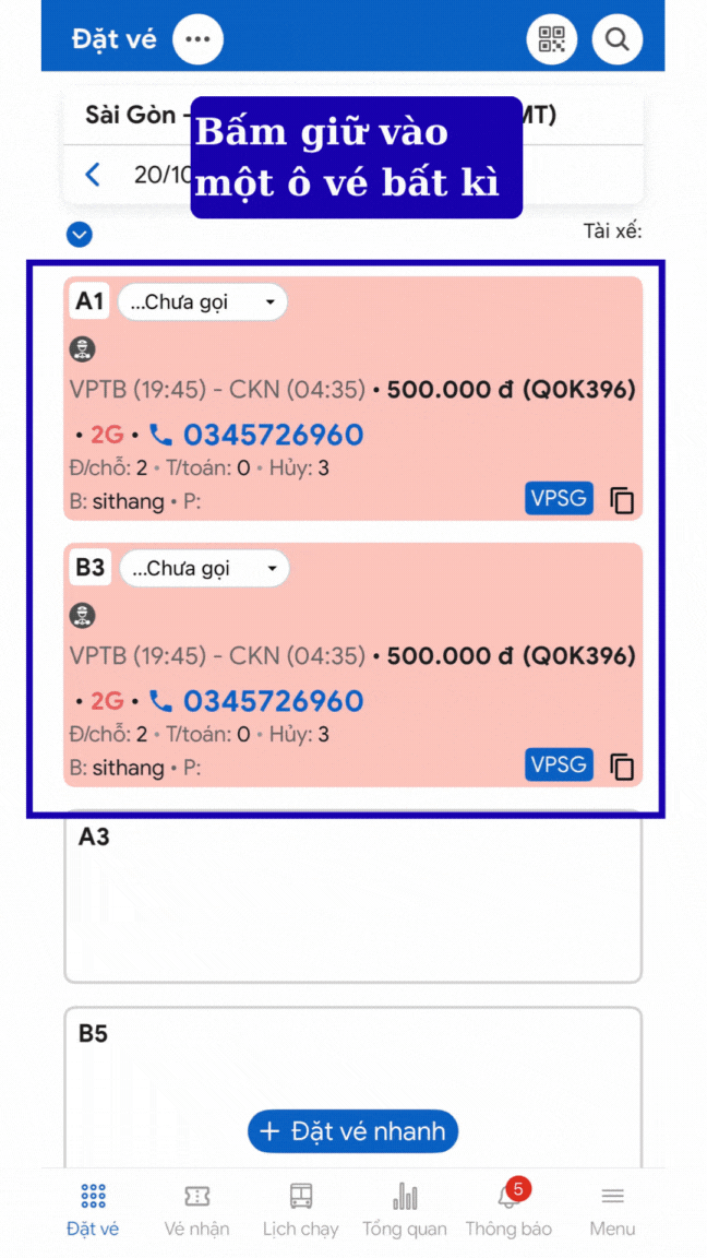Trong quá trình gọi điện cho khách hàng, nhân viên tổng đài hoặc nhân viên bán vé cần đánh dấu những vé đã được xác nhận để tránh trùng thao tác, nhầm lẫn hoặc bỏ sót khách. Tính năng “Xác nhận vé” trên Ứng dụng Quản lý bán vé cho phép người dùng dễ dàng ghi nhận vé nào đã liên hệ và xác nhận thành công.
