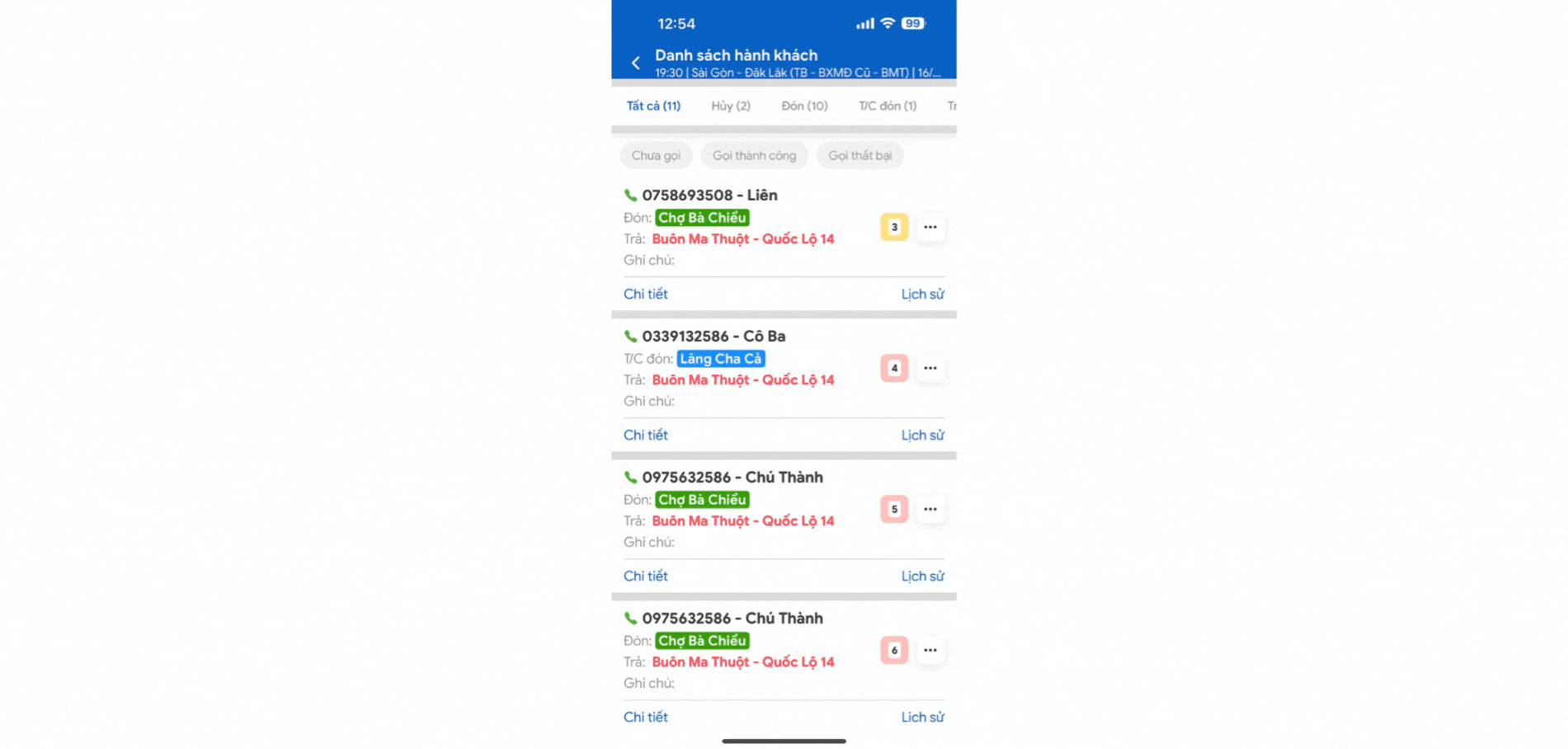 - Chủ xe: Theo dõi danh sách khách, biết xe nào còn chỗ, xe nào sắp khởi hành.