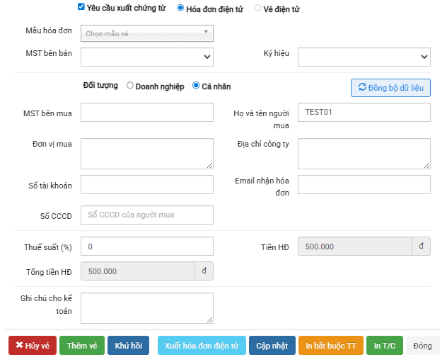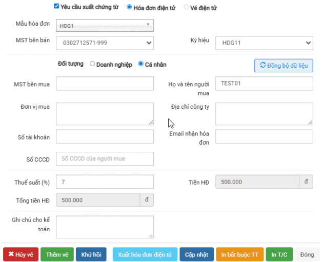 - Nhân viên bán vé hoặc kế toán hỗ trợ xuất hoá đơn điện tử cho khách hàng