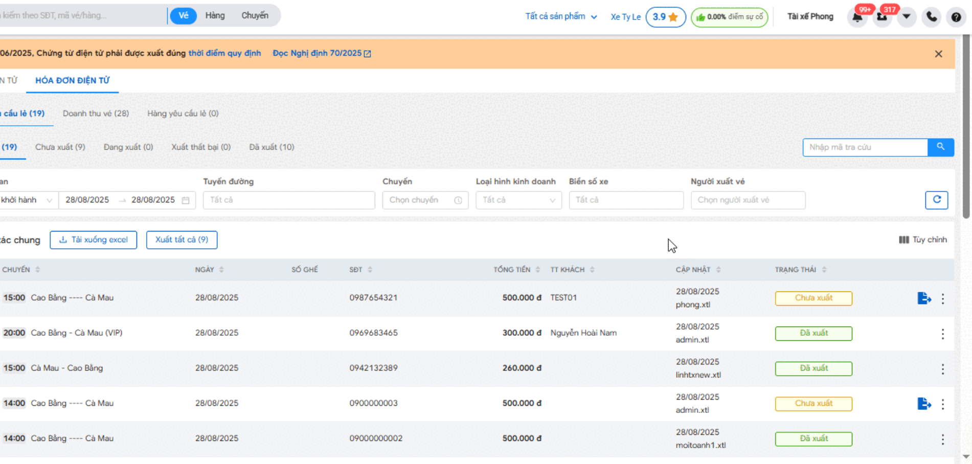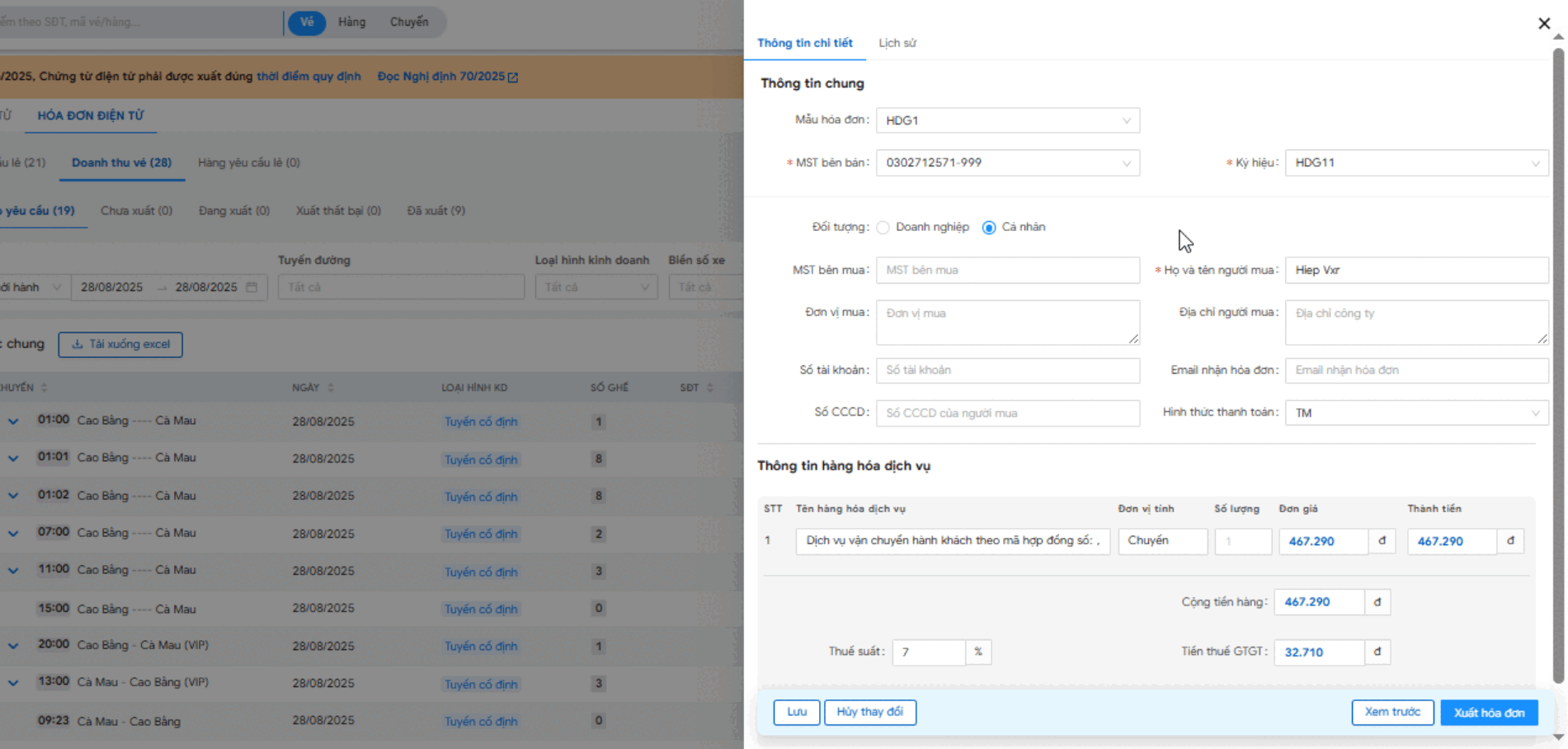 3.2 Xuất hoá đơn điện tử cho cả chuyến