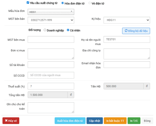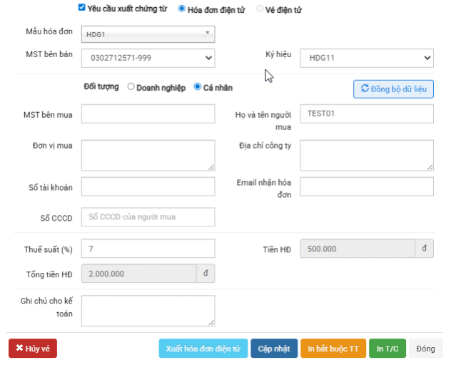 3.1 Xuất hoá đơn điện tử cho khách lẻ