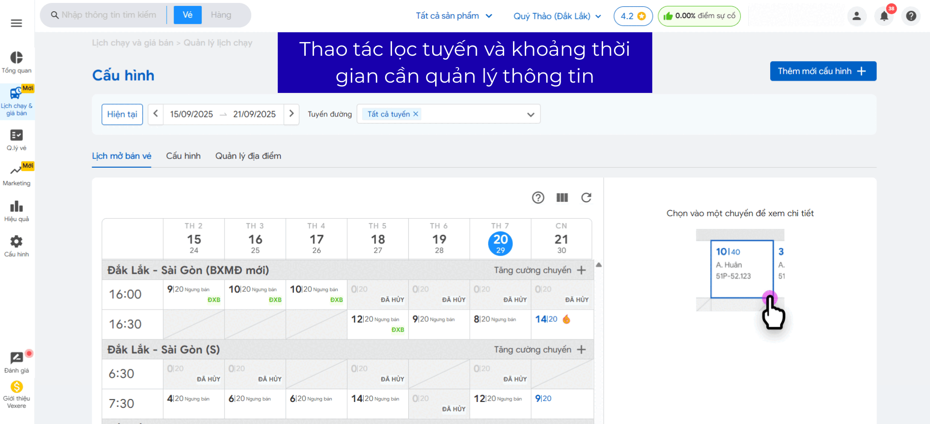 Sau khi hoàn thành thao tác lọc thông tin, nhà xe có thể đọc thông tin chuyến tại mỗi ô, bao gồm