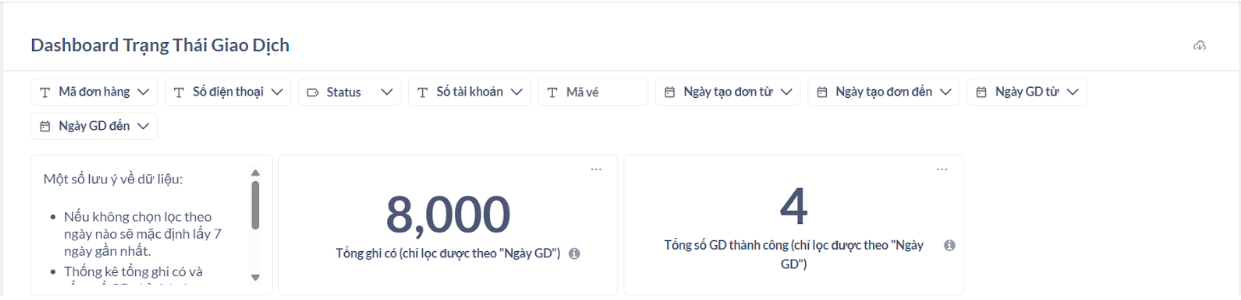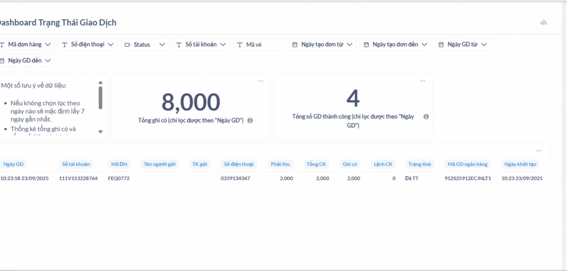 - Tổng số GD thành công: Tổng số giao dịch chuyển khoản