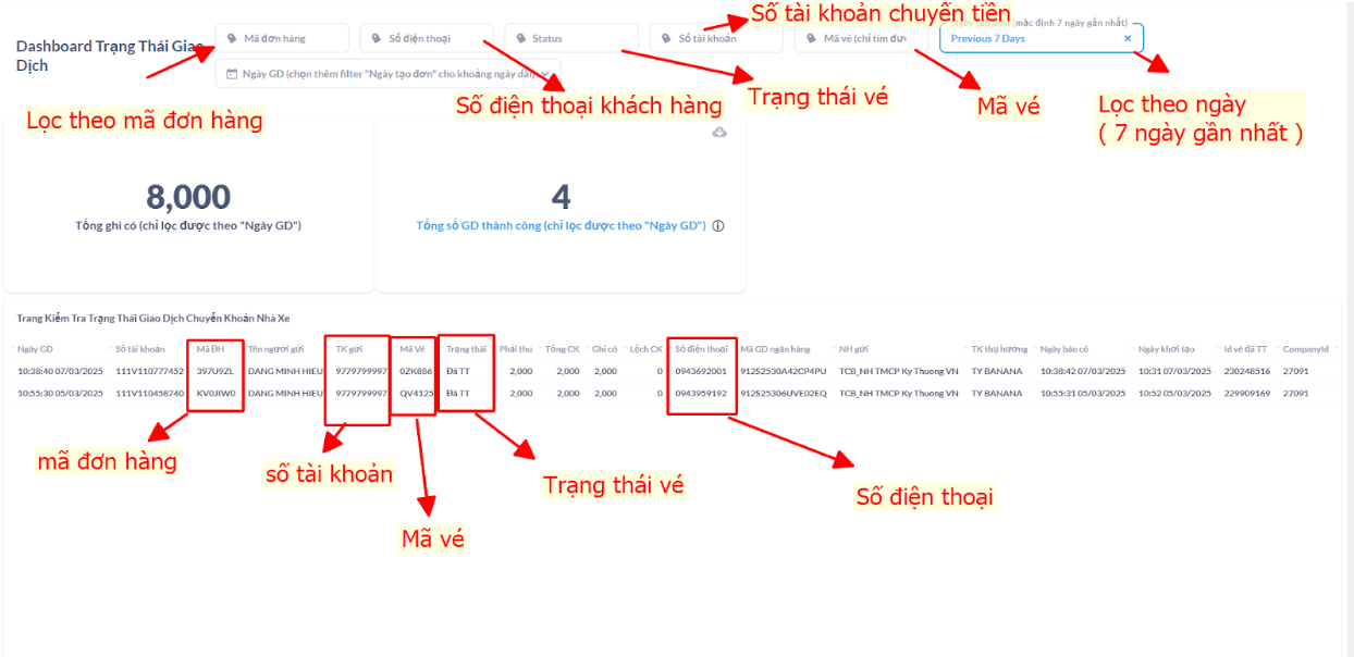 Bài viết này giúp anh/chị biết cách kiểm tra, lọc và xuất báo cáo dữ liệu chuyển khoản tự động. Từ bài hướng dẫn này, nhà xe có thể dễ dàng theo dõi doanh thu, quản lý tài chính và đưa ra quyết định nhanh chóng.